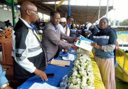 Katibu Tawala Mkoa wa Morogoro, Mhandisi Emmanuel Kalobelo ambae ni Mgeni rasmi katika maadhimisho ya Siku ya Wafanyakazi Duniani kimkoa yaliyofanyika katika uwanja wa Jamh...